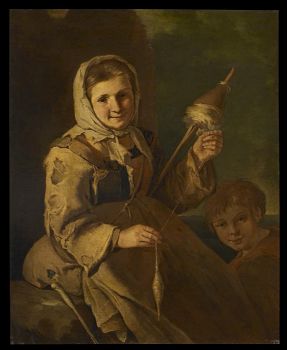 Giacomo Francesco Cipper, detto "Il Todeschini" (Feldkirk 1664 - Milano 1736) "La filatrice" Olio su tela